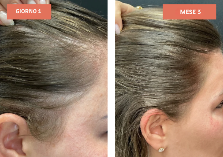 Questi “baby hairs” indicano che i follicoli stanno rispondendo ai nutrienti aggiuntivi e alla riduzione dei livelli di DHT.
